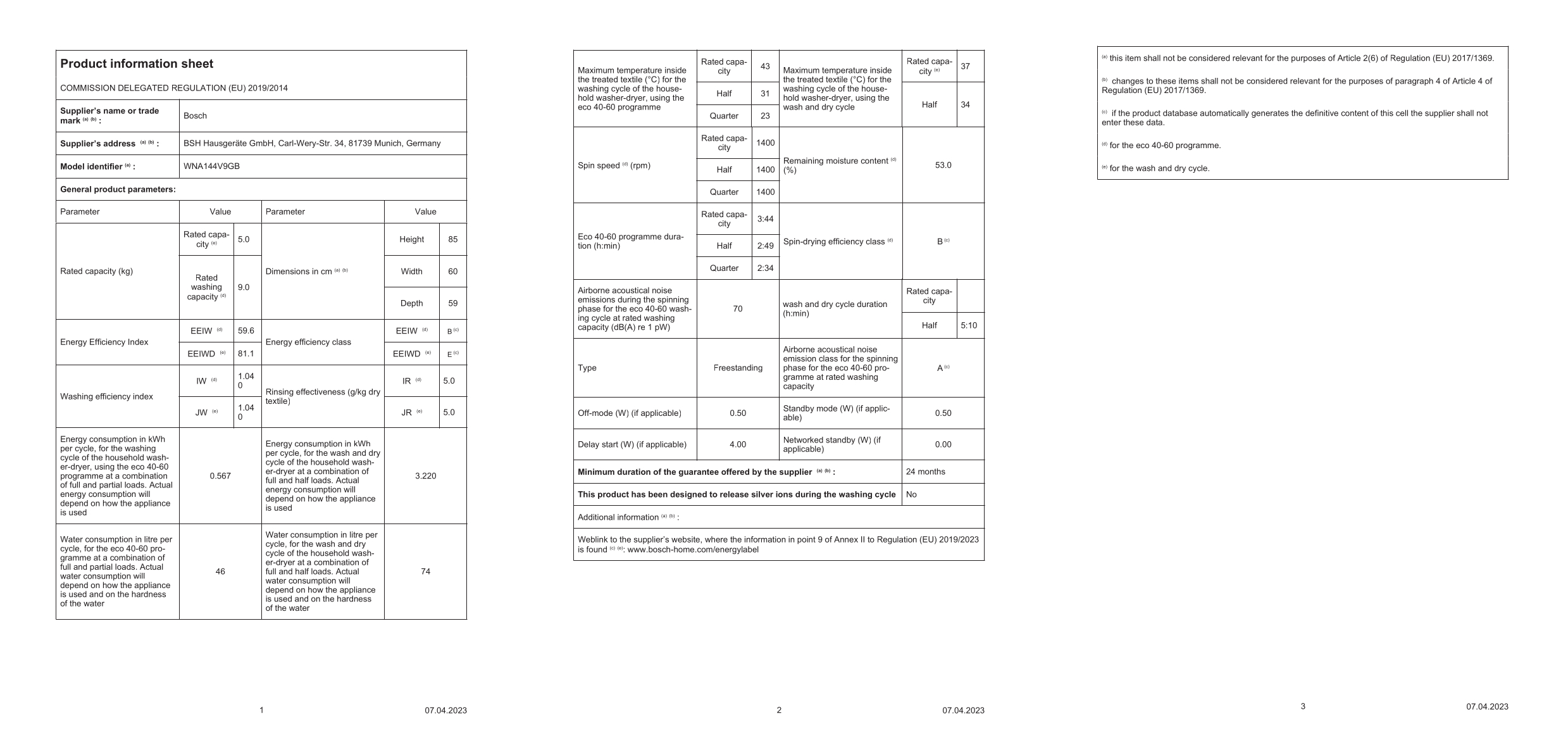 - Energy Rating (drying only): E for responsible energy consumption